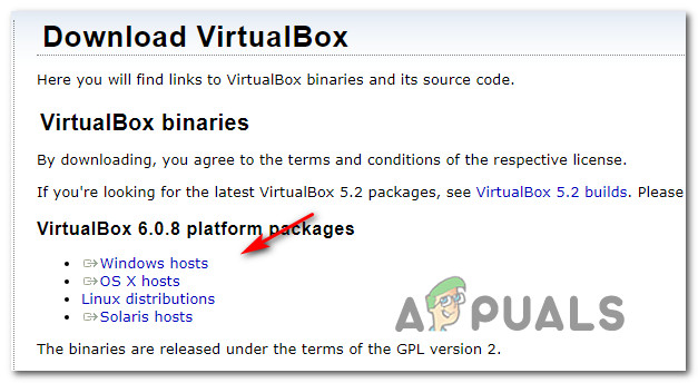 - When the next startup sequence is complete, visit this link (here). Once you get there, click on Windows hosts (under VirtualBox platform packages) to initiate the download.