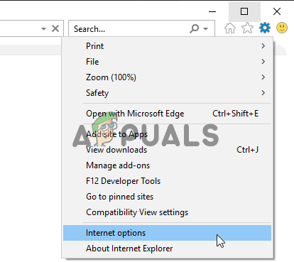- Open Internet Explorer on your computer by searching for it on the Desktop or the Start menu. Click on the cog icon located in the top right corner. From the menu which opens, click on Internet Options to open a list on related connection settings.