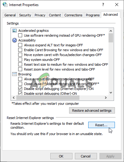 Even though many people think Internet Explorer simply takes up space on your computer without any real purpose, it’s not completely true. Many Internet connection settings go through Internet Explorer. Users have even reported that they were able to resolve the FFXIV launcher black screen problem simply by resetting the Internet Explorer settings. Follow the steps below in order to do that as well!