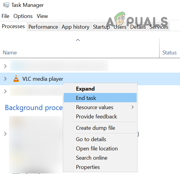 End VLC Process in the Task Manager - Now open the game launcher (as administrator) and check if the issue is resolved.