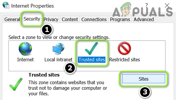 Open Internet Options of Your System - Now steer to the Security tab and select Trusted Sites.