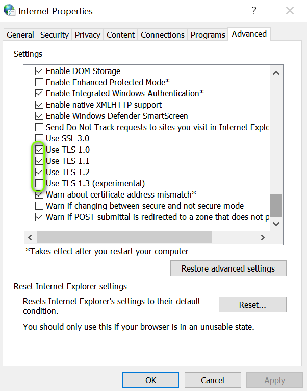 Edit Advanced Internet Options