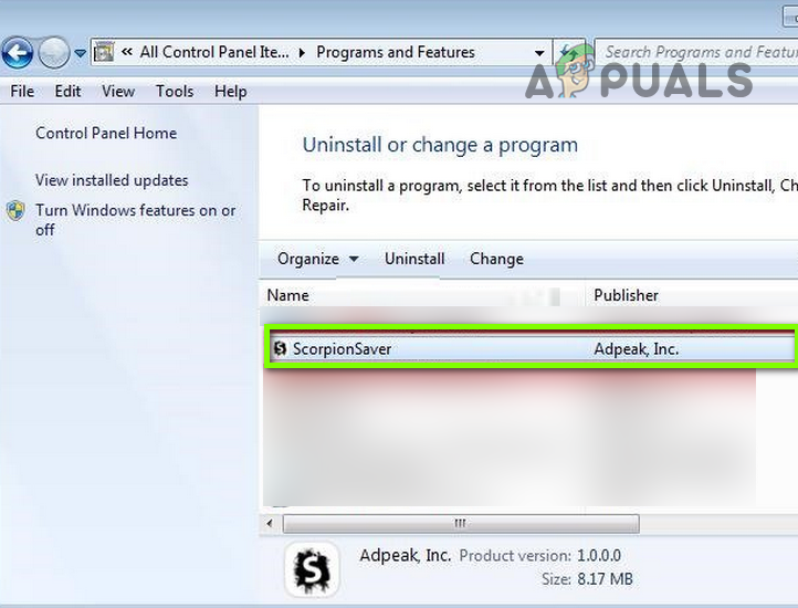 Open Apps in the Windows Settings - Once found (e.g., Scorpion Saver), then expand and Uninstall it (you may have to perform these actions in the Safe Mode or clean boot state of your PC).