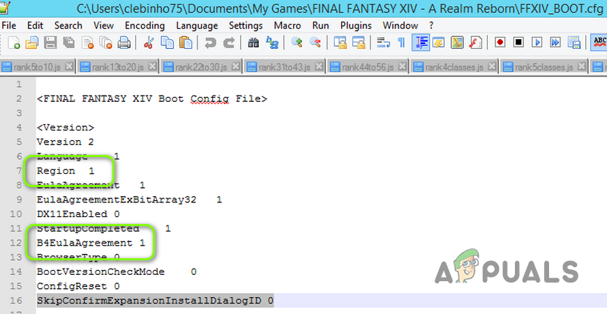 - If not, then repeat steps 1 to 4 to open the FFXIV_BOOT.cfg file in the Notepad and change the value of Region to 1.