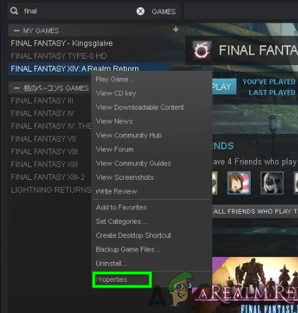 - Launch the Steam client and in the Steam library, right-click on FFXIV.