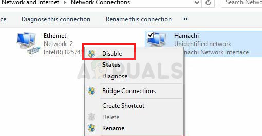 - In the Internet Connection window, right-click the Hamachi network connection and select Disable. Wait a few minutes, then right-click again and select Enable. Check if the Hamachi Tunneling issue persists.