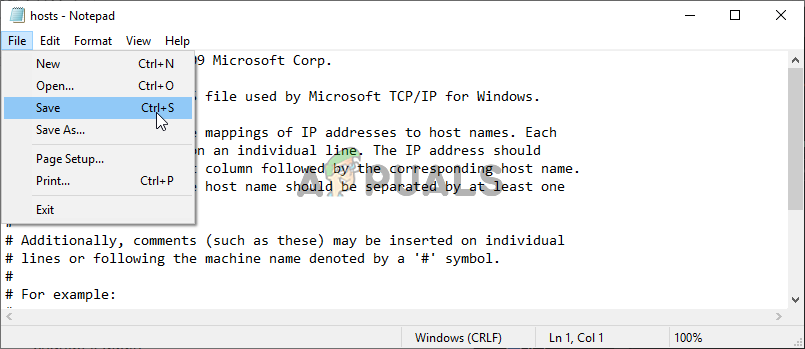 - Click File >> Save to save the changes. Exit Notepad and restart your computer. Check to see if the problem persists regarding Origin to log in properly.