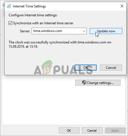 - Alternatively, you can choose to synchronize time with an online server by following these steps. Navigate to the Internet Time tab in the Date and Time window and click the Change settings Check the box next to the Synchronize with an Internet time server option and click on the Update now button. Then click OK, Apply, OK and close Control Panel.
