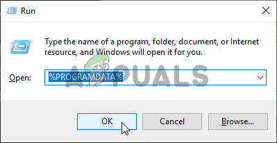 - Either click the Start button or the search button next to it and type “Run” or use the Windows Key + R key combination to bring up the Run dialog box. Type in “%ProgramData%” and click Enter.