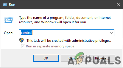 - Open the Run by pressing the “Windows + R” keys together. Once Run is opened type “Control” and press Enter.