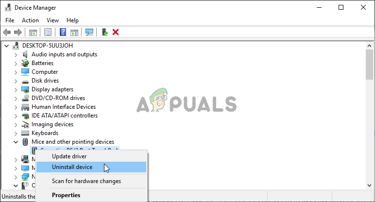 - Locate your graphics card, mouse, and keyboard, respectively, right-click these entries and choose Uninstall device from the context menu which will appear.