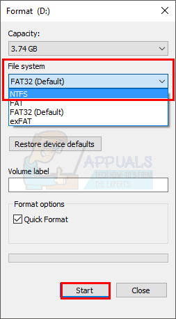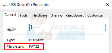 - Check the file system of the drive. If it FAT32 then click Cancel