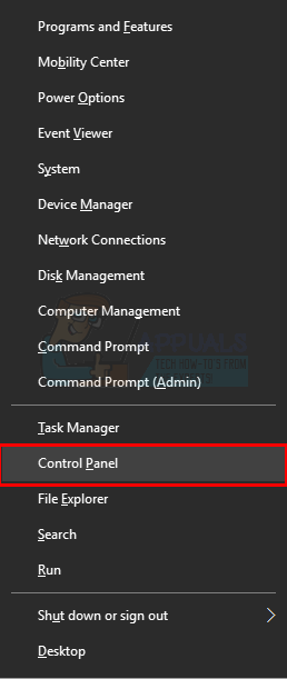 - Hold Windows key and press X (release the Windows Key) and select Control Panel.