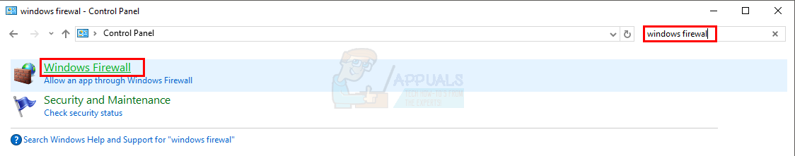 - Type Windows Firewall in the search bar located in the top right corner and click Windows firewall