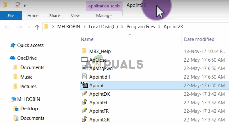 - Locate the apoint.exe file inside the Apoint2K folder, right-click it, and choose the Rename option from the context menu which will appear. Rename it to something like ‘apoint_old.exe” and confirm the changes. Restart your computer and check to see if the same problem still appears on your computer!