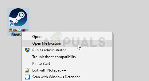 - However, if you have the Steam program’s shortcut on the desktop, you can simply right-click on it and choose the Open file location option from the context menu that will appear.