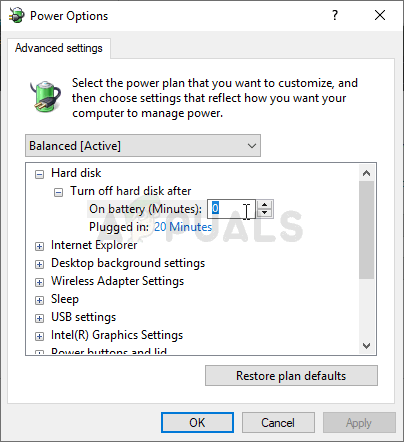 The problem may be caused by hard disk issues when the HDD is turned off at the wrong moment, just enough to corrupt the file being downloaded. This causes the Corrupt Disk error and prevents the file from downloading further. Try disabling the option to turn off the hard drive to save power in Power Options!