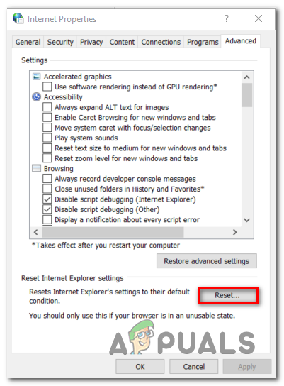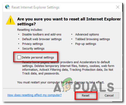 Resetting the Internet Explorer settings - Under the Reset Internet Explorer settings section, click on the Reset button.