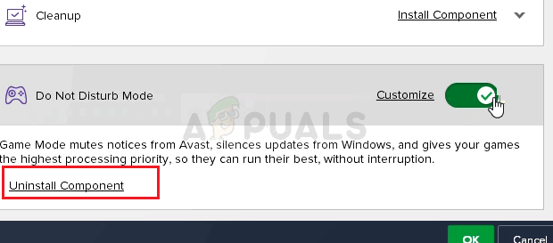 Users have reported that they managed to resolve the problem simply by removing a single component from Avast Antivirus. The ‘Do Not Disturb’ component is not a vital part of the internet security package and it’s only used to prevent notifications from interrupting you.