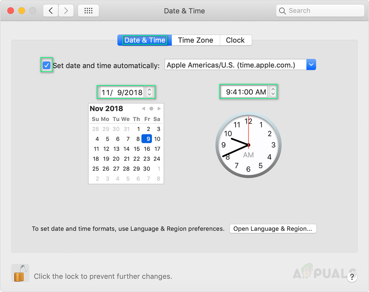 After brainstorming user’s feedback in the online community, it has been identified that the main reason for this error is the incorrect system date setting. Now, this can happen if the user hasn’t used his/her Mac for a while or accidentally changed settings for date and time.