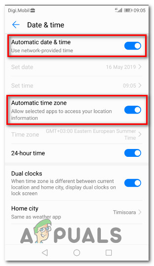 - Date & time is incorrect on the mobile device – Google Authenticator is known to generate faulty codes in instances where the time & date and the timezone are incorrect in relation to the region. Several users encountering this issue have managed to resolve the issue by setting the correct values and restarting the device.