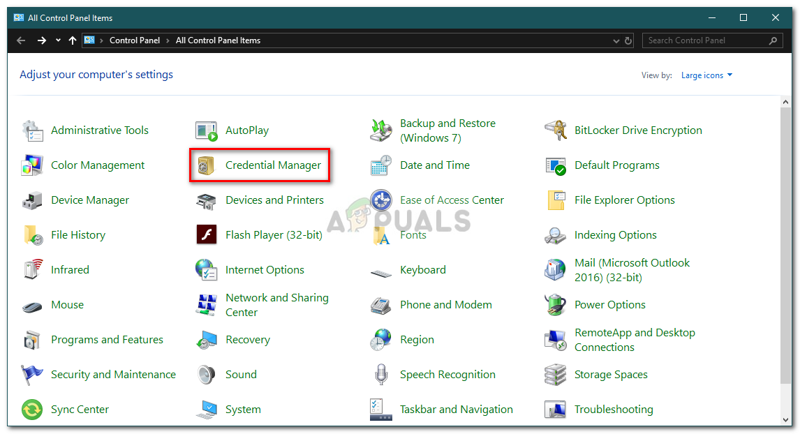 Control Panel - Once you’re inside the Credential Manager, select Windows Credentials from the top of the screen, then go ahead and inspect all you stored credential for any mentions of Microsoft Office.