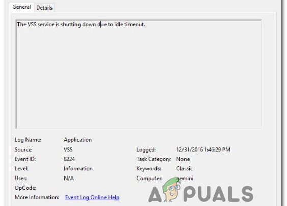 Some users have been reaching us with questions after discovering that the Volume Shadow Copy Service (VSS) is typically not running, even though it’s configured to start automatically. Upon investigating the problem with Event Viewer, some users have discovered a message pointing towards the problem “The VSS service is shutting down due to idle timeout“. As it turns out, the issue is not exclusive to a certain WIndows version since it’s confirmed to occur on Windows 7, Windows 8.1 and Windows 10.