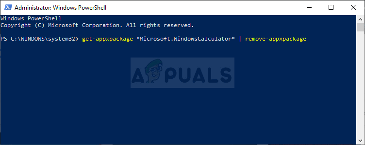 get-appxpackage *Microsoft.WindowsCalculator* | remove-appxpackage