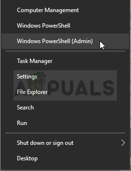 - Open the PowerShell utility by right-clicking the Start menu button and clicking the Windows PowerShell (Admin) option at the context menu.