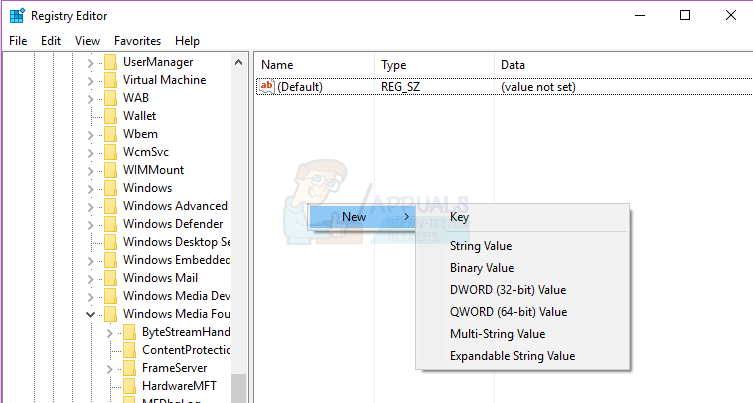 - Click on the registry key titled Platform under Windows Media Foundation sub-key in the left pane to have its contents displayed in the right pane.