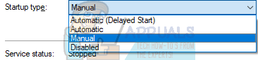 Windows Update Service - After stopping the process, click on the Startup Type option and select Manual from the list of options available.