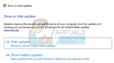 - Now run the downloaded package. After Windows scans your computer, you will be given two options. Select the one which says “Hide updates”.