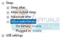 Change advanced power settings - A small new window will appear in front of you. Navigate to the near bottom and select “Sleep”. Now expand the category of “Allow wake timers”. Set it to enabled for both the options (On battery and Plugged in).
