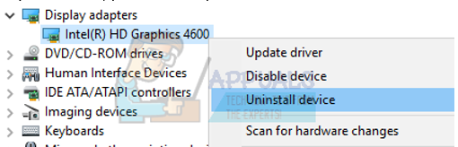 - Once in the device manager, expand the Display adapters section and right-click on your display hardware. Select the option of Uninstall device. Windows will pop a dialogue box to confirm your actions, press Ok and proceed.