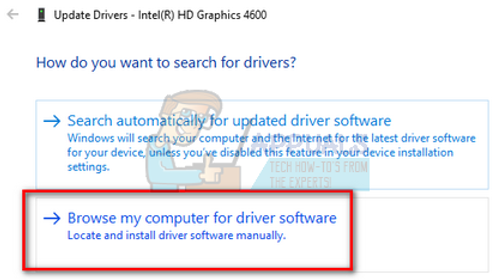 Update Driver of the Device in Device Manager - Now a new window will pop up asking you whether to update the driver manually or automatically. Select “Browse my computer for driver software”.