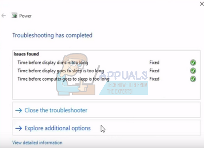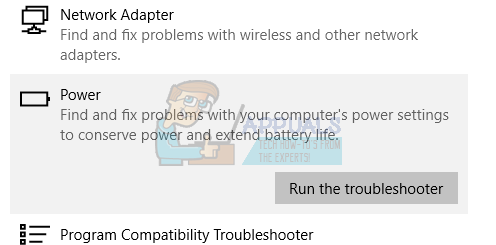 We can try running the power troubleshooter on your Windows. It is a utility developed by Microsoft to check the power settings and locate discrepancies. If the troubleshooter finds some settings which are causing the issue, it will automatically fix them and inform you.