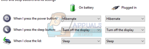 Choose what the power buttons do - Now you will be seeing a menu like this. Make sure that you apply these changes to both the options (On battery and Plugged in).