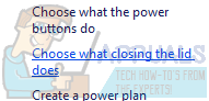 Change Power Options - Now click the option “Choose what closing the lid does“.