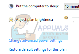- A new window will appear. Navigate to the near bottom and click on “Change advanced power settings”.