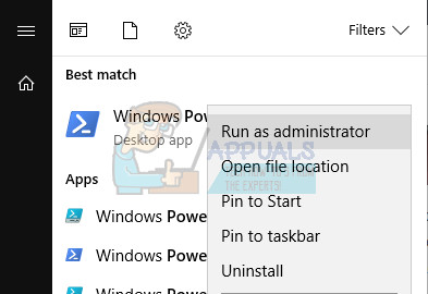 - Type PowerShell in the Search bar located at the bottom left part of your taskbar, right-click on the first result, and select Run as administrator option.