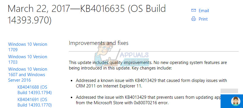 - Visit the official Microsoft site in order to find out whether this issue is caused by your version of Windows. For example, the update which is supposed to fix this issue (KB4016635) was released in March 22, 2017. If you have updated your computer regularly, you have installed this update as well and this solution does not apply to your scenario.
