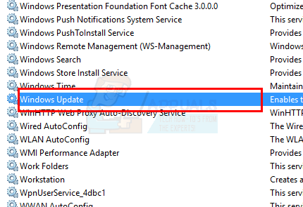 - Locate Windows Update service from the list and double click it