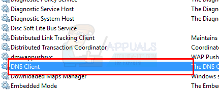 - Locate DNS Client service from the list and double click it