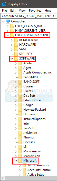 - Locate and double click SOFTWARE from the left pane