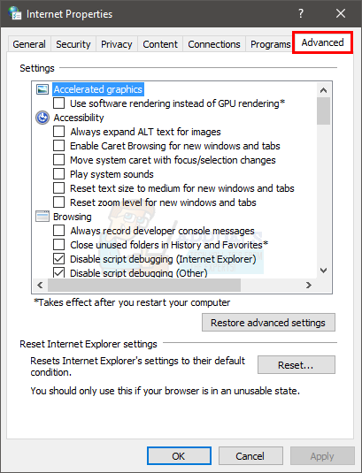 - Click Advanced tab