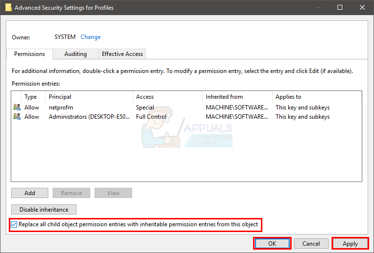 As mentioned in the beginning, the problem can also be caused by a permission issue in the registries. So, allowing the proper permissions to the registry key solves the issue as well. The steps for changing the permissions of a registry key are given below