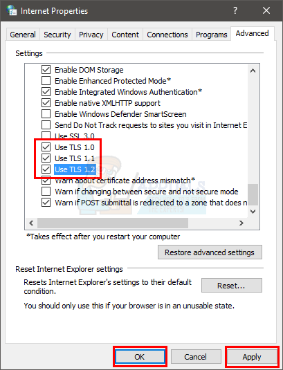 Enabling TLS from the Internet Options has worked for plenty of people. So, follow the steps given below to enable TLS.