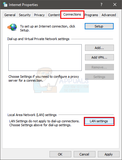 - Go to the Connections tab and click on LAN Settings.