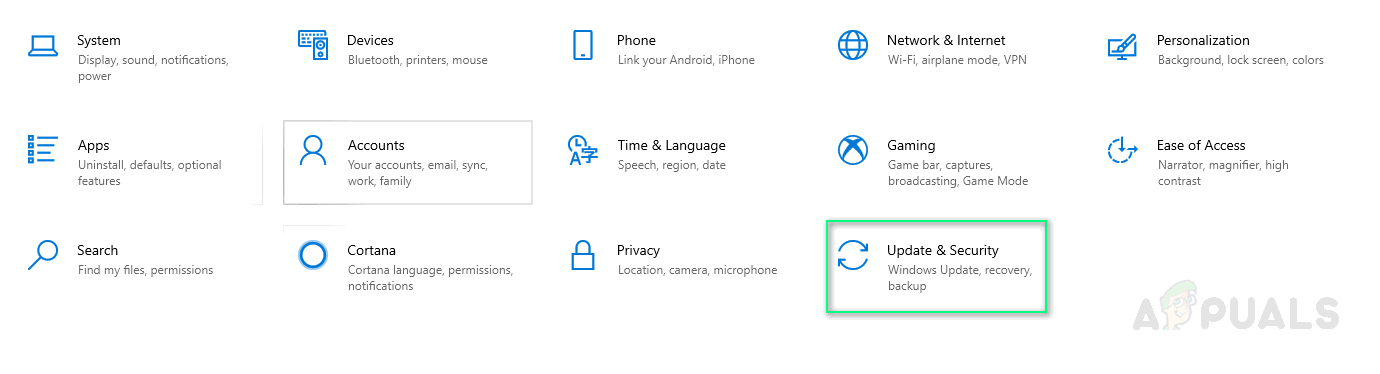 Opening Windows Settings - Click Update & Security.