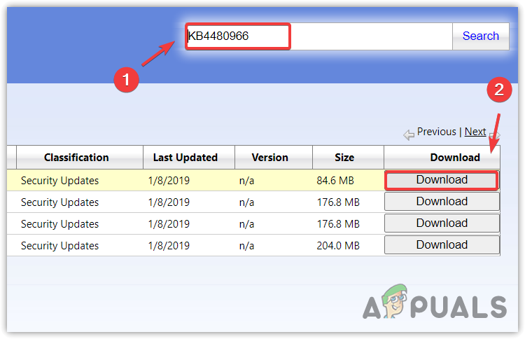 - Go to the Microsoft Catalog and search for the update that won’t install.